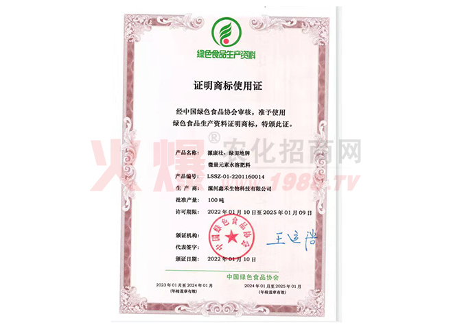 漯河鑫禾生物科技有限公司是農(nóng)業(yè)科技的殿堂,她沉積了待以開(kāi)發(fā)的物價(jià)科技財(cái)富,擁有大批的科技人才,公司目前擁有國(guó)家肥料登記證十一種,注冊(cè)商標(biāo)五個(gè),發(fā)明專利一項(xiàng)。